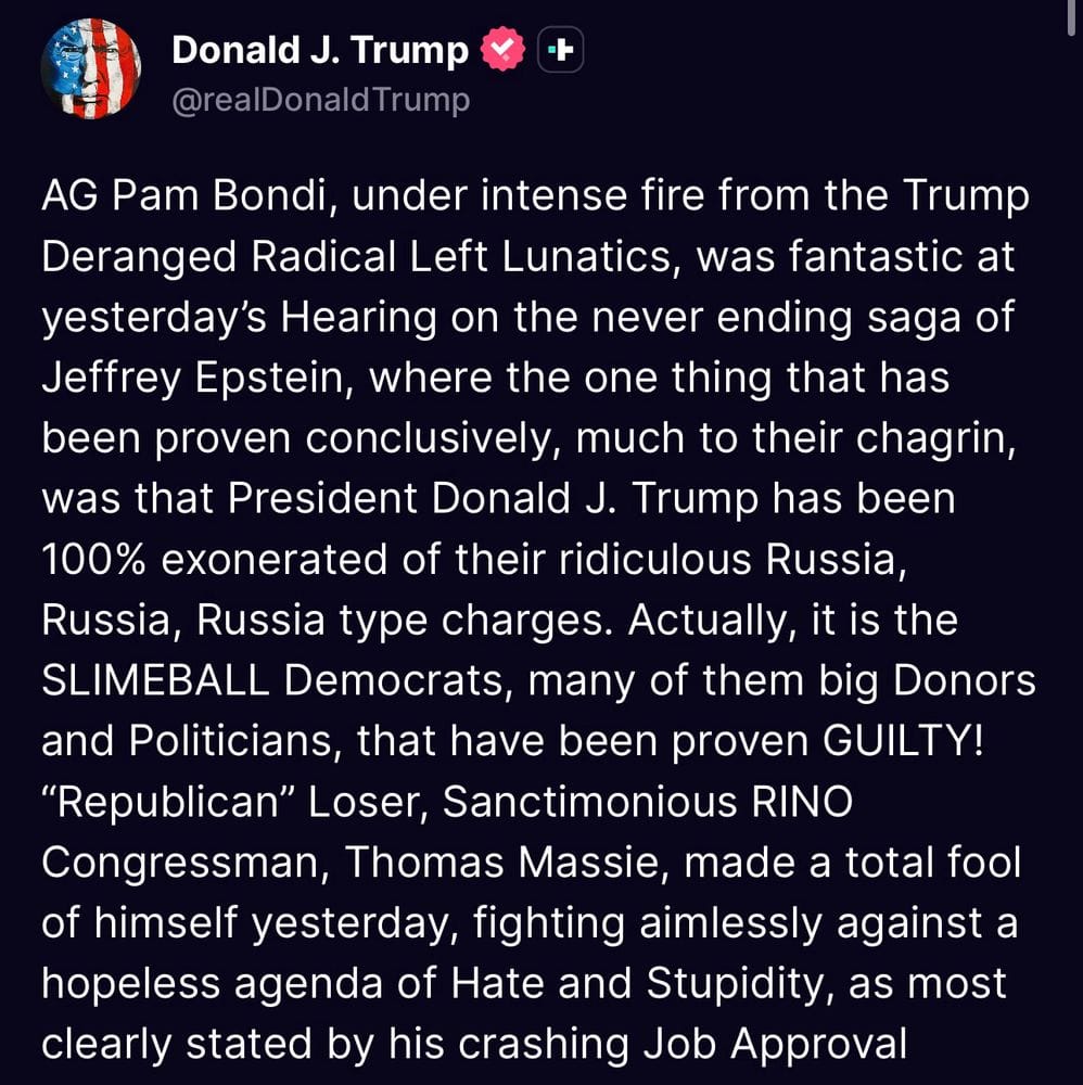 I mean, ranking member Jamie Raskin’s opening statement could be used later in drawing up articles of impeachment against Bondi. The Maryland congressman enumerated all the ways the attorney general “ignored the law” passed by the Congress to release the Epstein files.